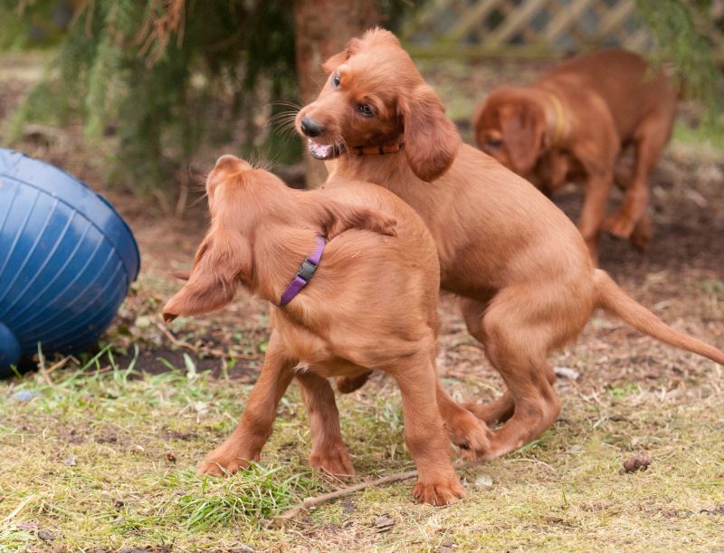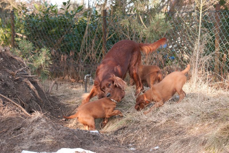 Meine Jungs Orlando und Nilsson waren zu den Welpen absolut großartig und haben den Welpen viel beigebracht. Auch unsere Tierärztin war bei uns und hat geimpft und gechipt. Sie war mehr als zufrieden und alle Zwerge waren ganz tapfer und haben dabei keinen Ton gesagt. Auch unsere Zuchtwartin hat uns einen tollen Wurfabnahmebericht geschrieben. Das Wetter hat auch während der gesamten Zeit gut mitgespielt. So konnten die Welpen Sonne, Schnee, Regen, Eis und auch Wasser kennenlernen. So sind die Lütten denke ich gut für die große weite Welt vorbereitet. Alles in allem eine runde Sache, wenn denn dann die Abgabe der Welpen nicht wäre. Ein Trost für mich ist, daß ich viele meiner kleinen Zöglinge wiedersehen werde. Es haben sich tolle Interessenten gemeldet, die den kleinen Powerpaketen ein settergerechtes Leben bieten werden.