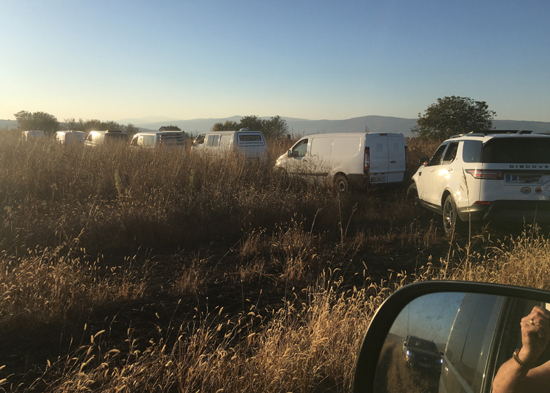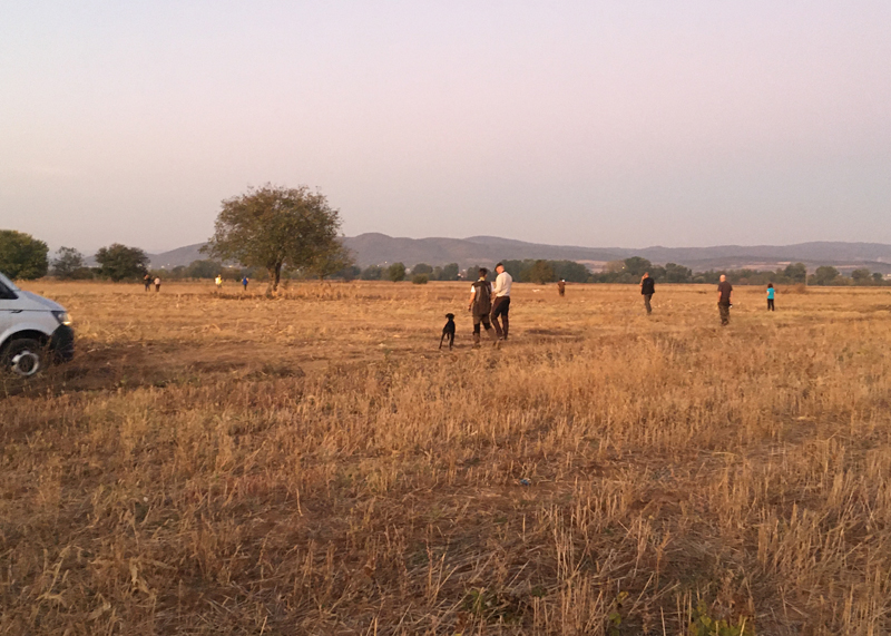 Um uns an die klimatischen Bedingungen anzupassen sind wir bereits eine Woche vorher angereist um ein wenig zu trainieren. Die Reviere rund um Nis sind bekannt für ihren sehr guten Besatz an Rebhühnern. Der Wettergott meinte es nur zu gut mit uns. Zwischen An- und Abreise nach Serbien war nicht ein Wölkchen am Himmel zu sehen und die Sonne schaffte es jeden Tag auf Temperaturen über 30 Grad zu bringen. Training war somit nur in den ganz frühen Morgenstunden und wieder ab 16 Uhr angesagt. Durch die kleinstrukturierte Landwirtschaft und das Nutzen keinerlei Spritzmittel auf den Feldern, die oft noch mit Pferd und Wagen bestellt werden, ist Serbien ein absolutes Hühnerparadies. Die starken Ketten von bis zu 30 Hühnern wollten natürlich auch gefunden werden. Durch den ausgetrockneten Boden und der starken Hitze haben sich diese natürlich in den Schatten verdrückt und waren schwer für die Hunde zu finden. Zudem ist natürlich auch der Trainingsdruck durch die vielen Dresseure sehr hoch und die schlauen Hühner verschwanden in Gebiete wo die Hunde keine Chance hatten sie zu finden.