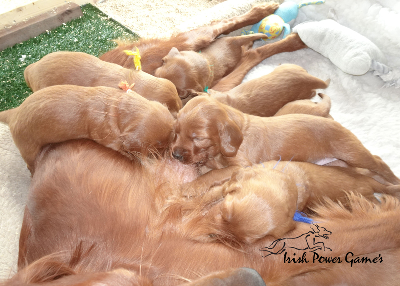 So langsam kommt richtig Leben in die Bude. Einige zu erkundende Sachen habe ich den Lütten gegeben. Zu niedlich wie sich sich an alles Neue heranwagen. Ohne Scheu und Ängstlichkeit wird alles eingehend untersucht. Es wird schon gerauft und auch schon mal gebellt. Sooo toll anzuschauen. Braydee macht Ihre Sache ganz fantastisch. Mit einer Geduldsruhe geht sie regelmäßig zu den Lütten. Das Gedränge ist dann groß. Das Highlight jedoch war diese Woche, nachdem die Lütten Interesse an Braydees Futter zeigten und auch Braydee ihr Futter den Welpen vorgebrochen hat, die leckeren Tatarbällchen die ich den gefräßigen Mäulern in der Hand vorgehalten habe. Somit werde ich ab sofort um Braydee zu entlasten ein bis zwei Mahlzeiten den Lütten anbieten. Es wird frische Ziegenmilch geben und eine kleine Fleischmahlzeit und bald steht der Umzug ins Hundehaus auf der Tagesordnung.