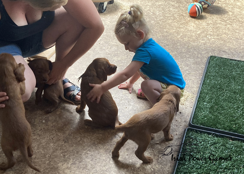 Die Welpentoilette wird auch hier gut angenommen und ich habe noch nie einen so sauberen Wurf gehabt. Ganz entzückend war auch der Besuch von Ida bei den Welpen. Eine gute Sozialisierung ist mir sehr wichtig.