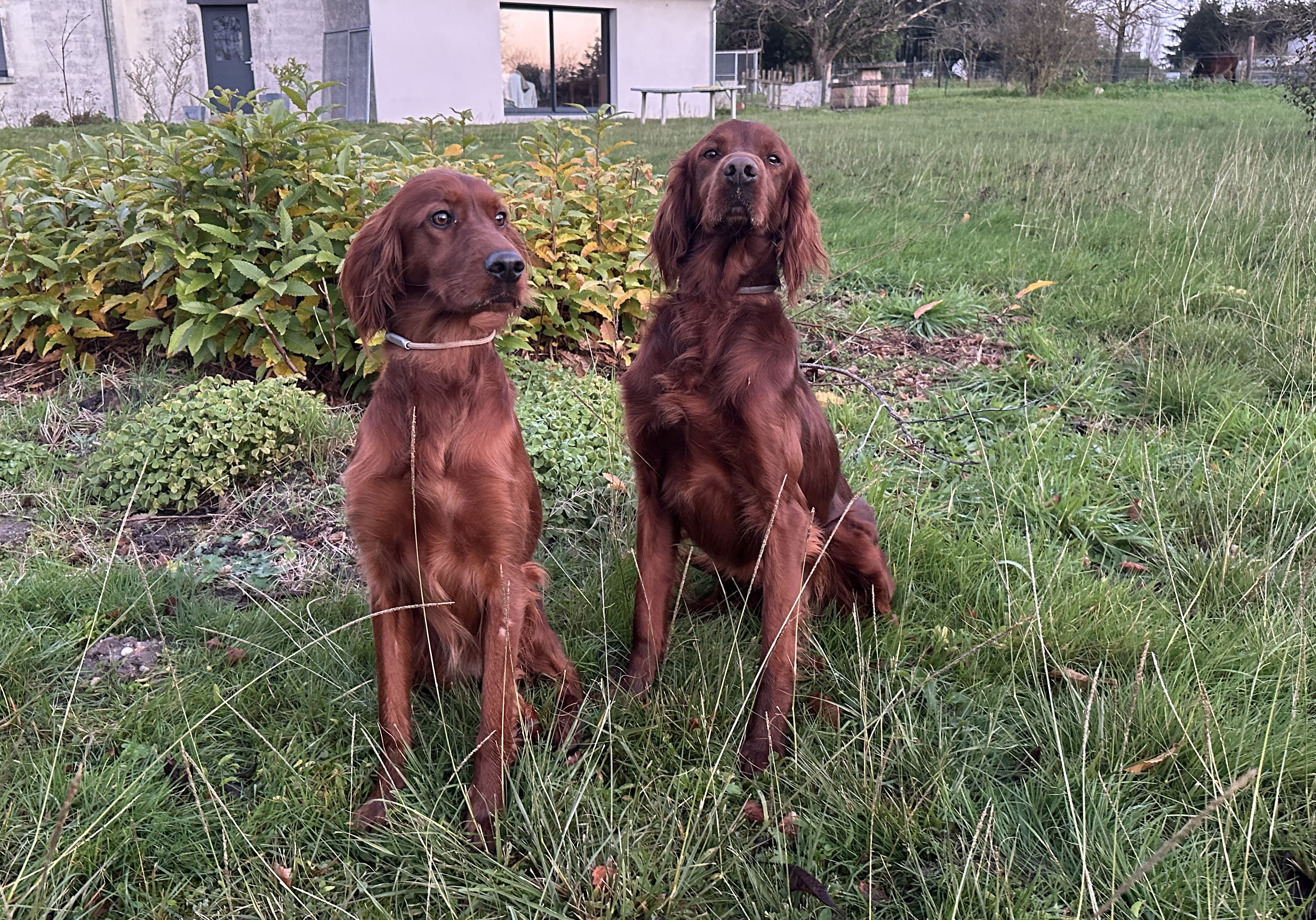Nun ist auch der zweite Akt vollzogen. Kurz vor Weihnachten gerade noch rechtzeitig vor Heiligabend sind wir mal eben in die Bretagne nach Frankreich gefahren und dort hat Irish Power Game´s Doreen den Rüden Pyrame du Bois de Balisy geheiratet. Die beiden haben sich auf Anhieb verstanden.