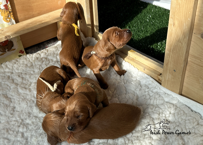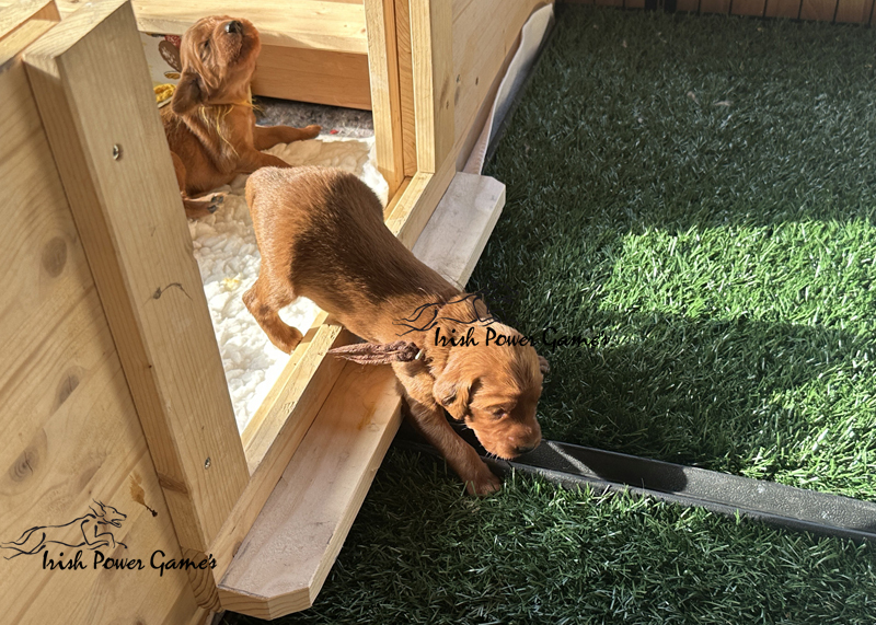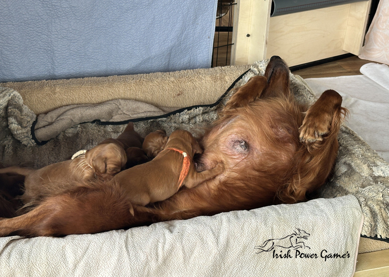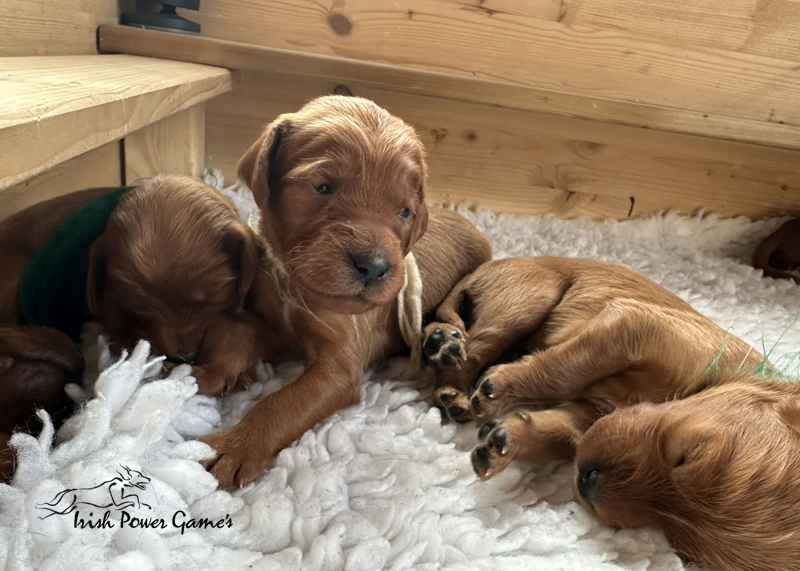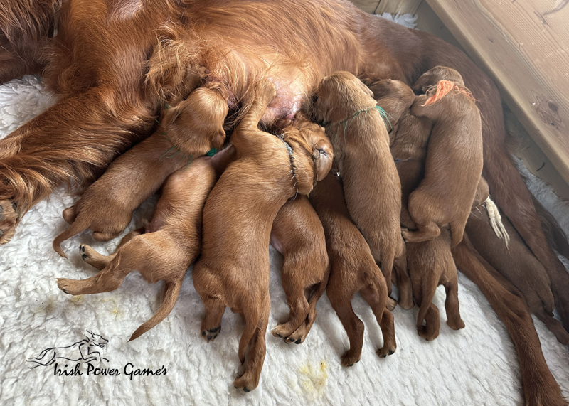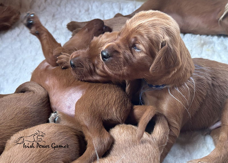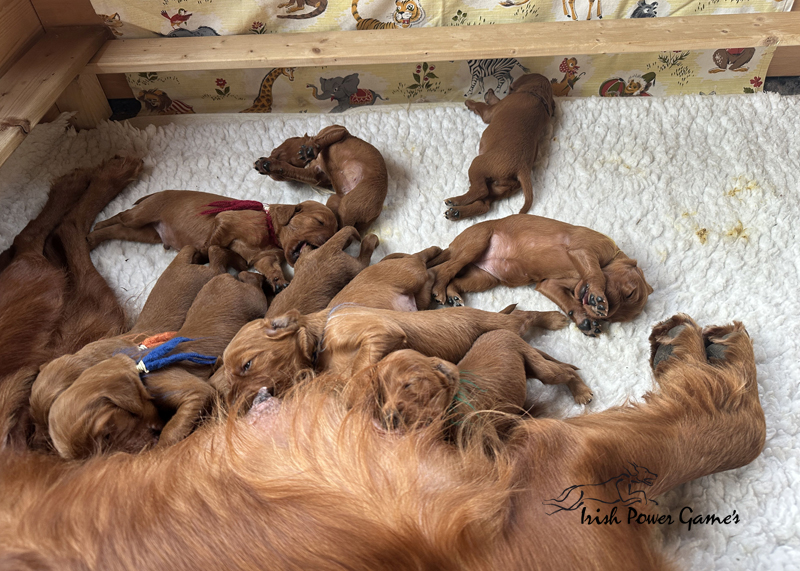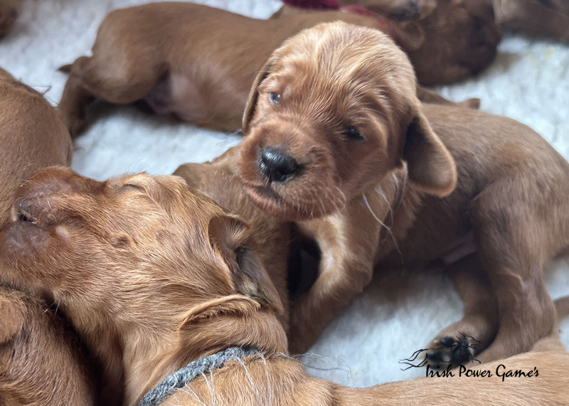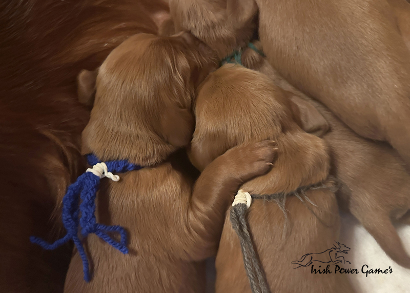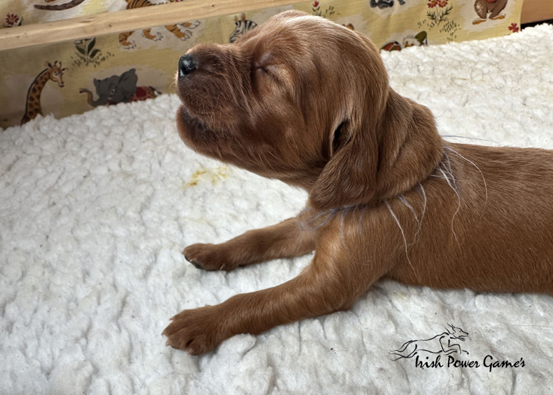 Die zweite Woche ist vorbei und die Welpen entwickeln sich weiterhin prächtig. Eine Menge ist diese Woche passiert. Die Sinnesorgane sind erwacht. Die Äuglein sind aufgegangen und die ersten Laufversuche sehen schon ganz passabel aus. Auch auf Geräusche reagiert die Mannschaft schon. Der erste Umzug ins Wohnzimmer ist nun auch schon erfolgt. Hier ist mehr Platz zum baldigen Erkunden der großen weiten Welt. Braydee ist nun nicht mehr ständig in der Wurfkiste, sondern beobachtet ihre Brut von außen und geht nur zum Putzen und säugen noch hinein. Mutti wird beim Betreten der Box direkt bemerkt und der Run auf die Zitzen beginnt. Einfach goldig anzuschauen. Langsam wird es eng an den Zitzen. Papa Nilsson darf auch schon dabei sein und beobachtet mit Hingabe seine Brut. Die Wurfkiste ist nun offen und die ersten Erkundungen haben stattgefunden. Alles noch recht unbeholfen, aber der erste Schritt ist getan.