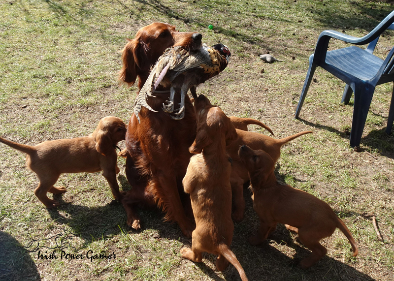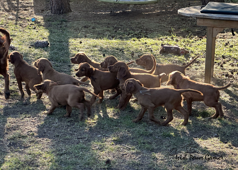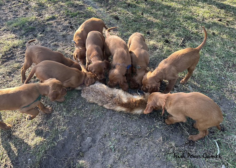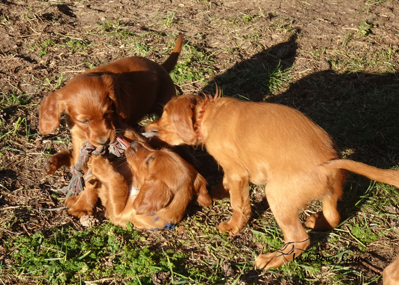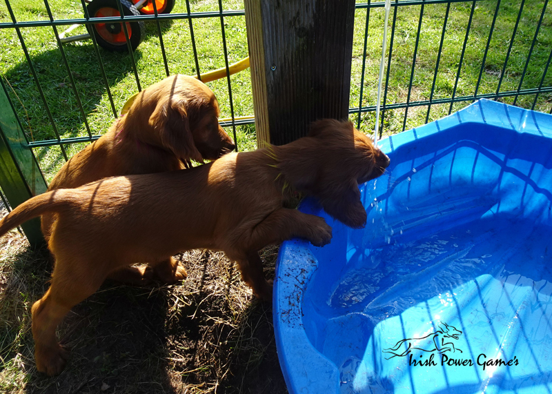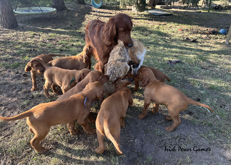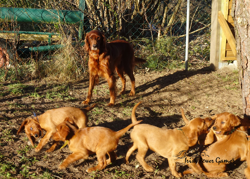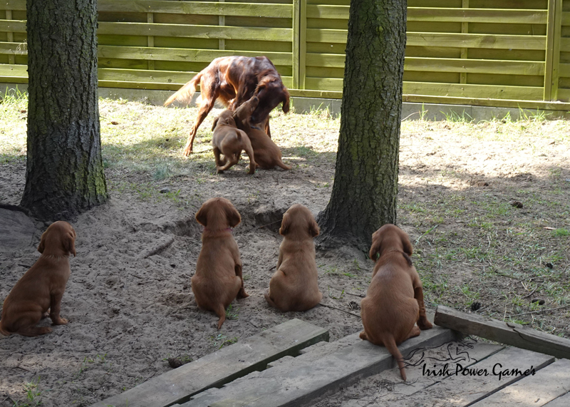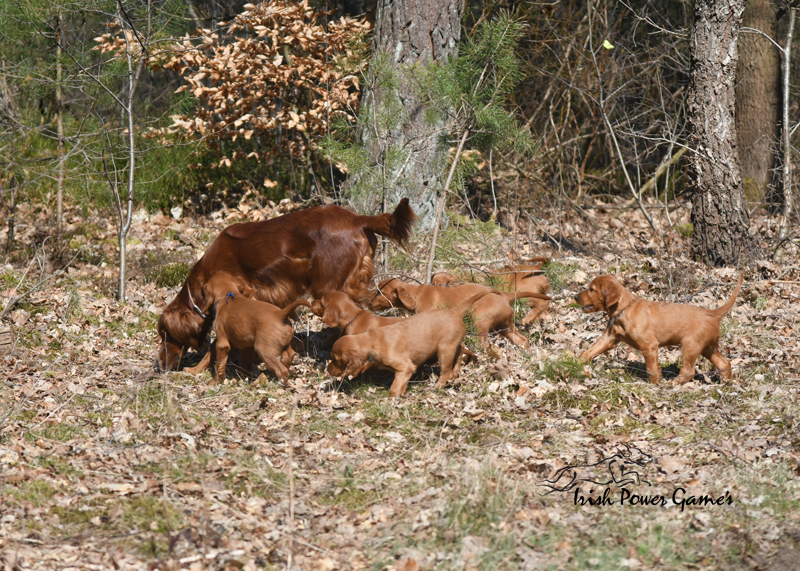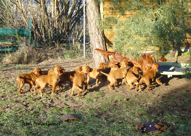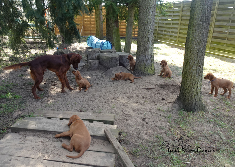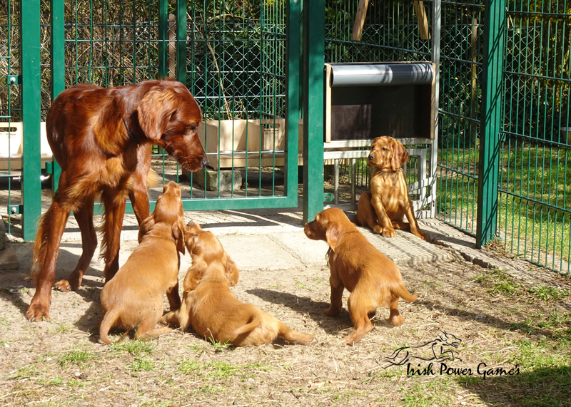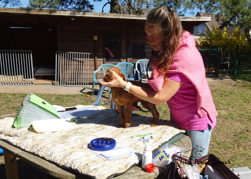 Diese Woche ist eine Menge passiert. Wir haben eine ca. 50 km Autofahrt gemacht und einen kleinen Ausflug in den Wald gemacht. Alles war dort sehr spannend und die Lütten haben das neue Gelände ausgiebig untersucht. Sie fanden es auf jeden Fall sehr lustig. Weiterhin haben sie nochmal Bekanntschaft mit Wild gemacht und auch beim Fuchs waren keinerlei Berührungsängste festzustellen. Die Arbeitseinheiten wie Fußgehen, im Körbchen bleiben und Schulung des Blickkontaktes wurde auch weiter präzisiert. Am Ende der Woche wurde aus dem Tierarztspiel ernst. Unsere Tierärztin hat gechippt und geimpft und die Wurfabnahme durch unseren Zuchtwart verlief auch problemlos. Es wurden keinerlei Mängel festgestellt und es wurde uns eine vorzügliche Aufzucht bescheinigt. Nun sind die Lütten auszugsbereit und werden die nächsten Tage unser Haus verlassen. Ich habe die Grundlagen gelegt und nun liegt es an den neuen Besitzern aus den kleinen Rohdiamanten das Beste daraus zu machen