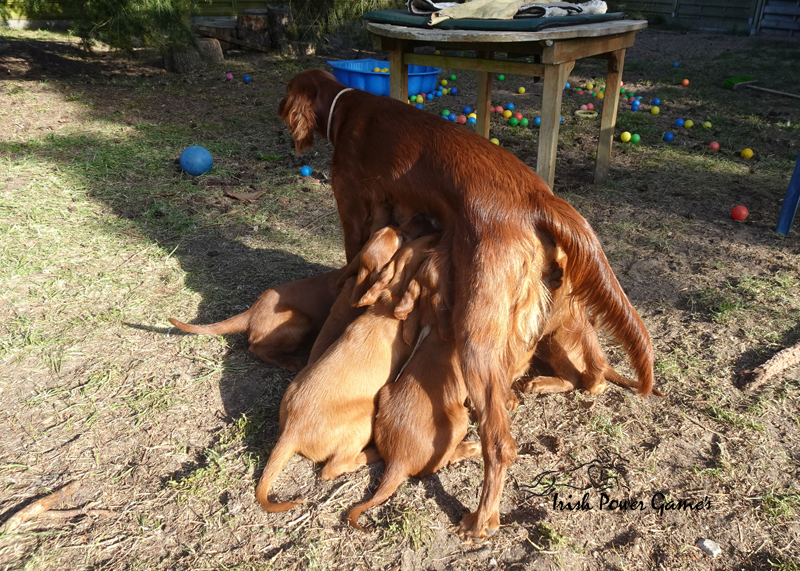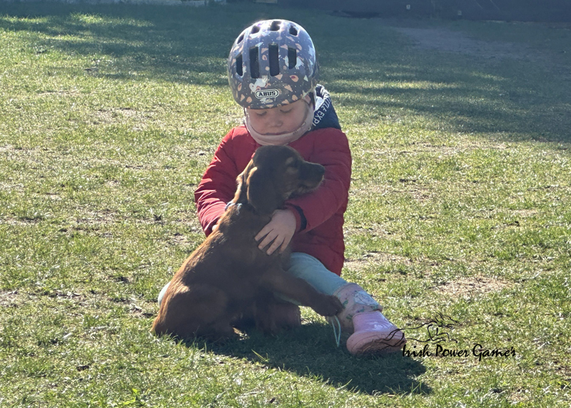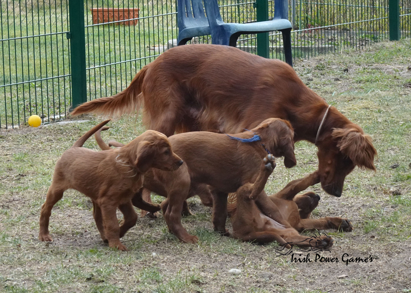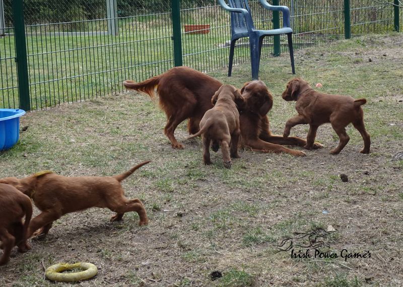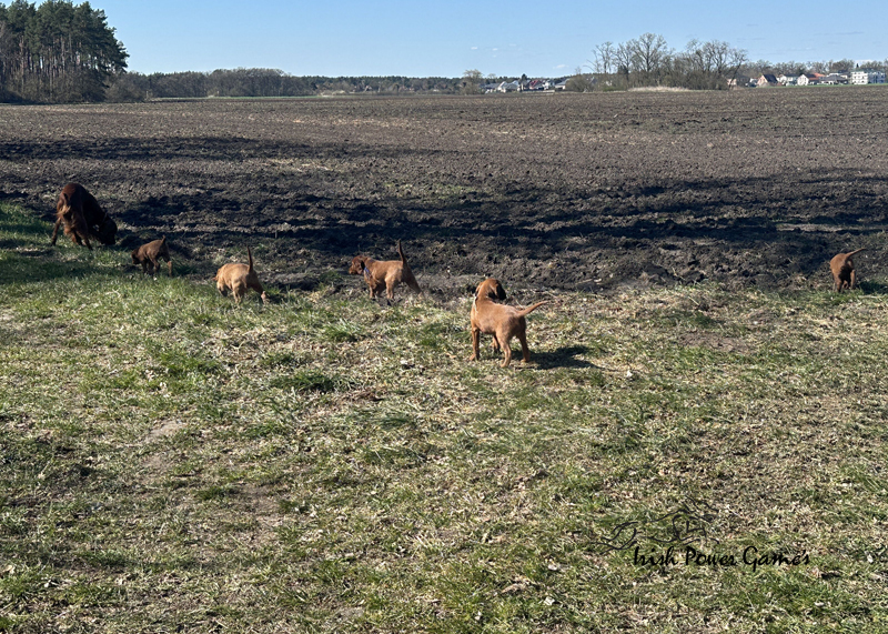 Fast alle Welpen von Braydee waren Anfang der Woche ausgezogen und so habe ich eine Familienzusammenführung gemacht. Abwechselnd lasse ich nun die Mutterhündinnen zu den Welpen und die kleine Bande findet es Klasse neue Spielpartner erhalten zu haben. Herr Lila von Braydee wird nämlich erst zum Wochenende abgeholt. Somit sind alle happy. Nun ist somit auch die 5 er Bande auf dem Abenteuerspielplatz. Die kleinen H-chen haben auch schon bereits ihre erste Autofahrt ins Gelände ohne jegliche Vorkommnisse gemeistert. Täglich gibt es neuen Input und auch die Schulübungen, wie Sitz, Platz und im Körbchen bleiben klappen schon immer besser. Viel Zeit zum fotografieren war leider nicht, aber die Lütten sind auf jeden Fall gut drauf.