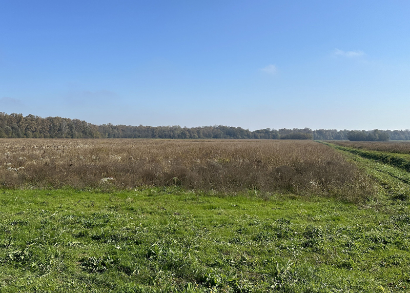 Die Reviere waren nicht weit von unserem Hauptquartier entfernt. Jagdlich sehr schönes, gut einsehbares durchweg flaches Gelände mit Gräben und Heckenstreifen, teils mit sehr hohem Bewuchs, aber auch offene Flächen mit Wintergetreide oder Zwischenfrüchten. Auch waren einige brachliegende Altgrasstreifen dabei. Kurzum ein ideales Biotop für Niederwild.