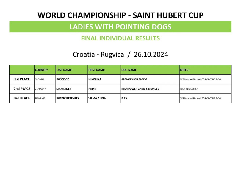St. Hubert Damen Einzelwertung: