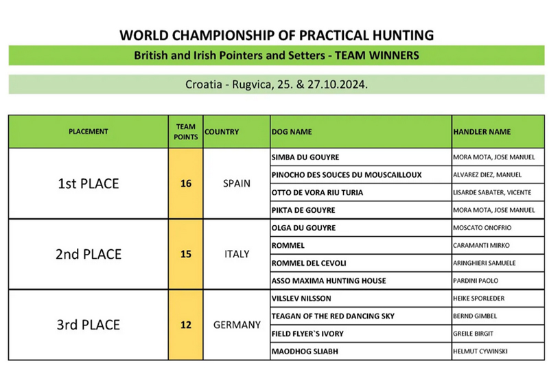 Am Ende der beiden Auswahlsuchentage wurden für die deutsche Mannschaft auf der WM und der St. Hubert für die englischen Vorstehhunde folgende Teams nominiert: